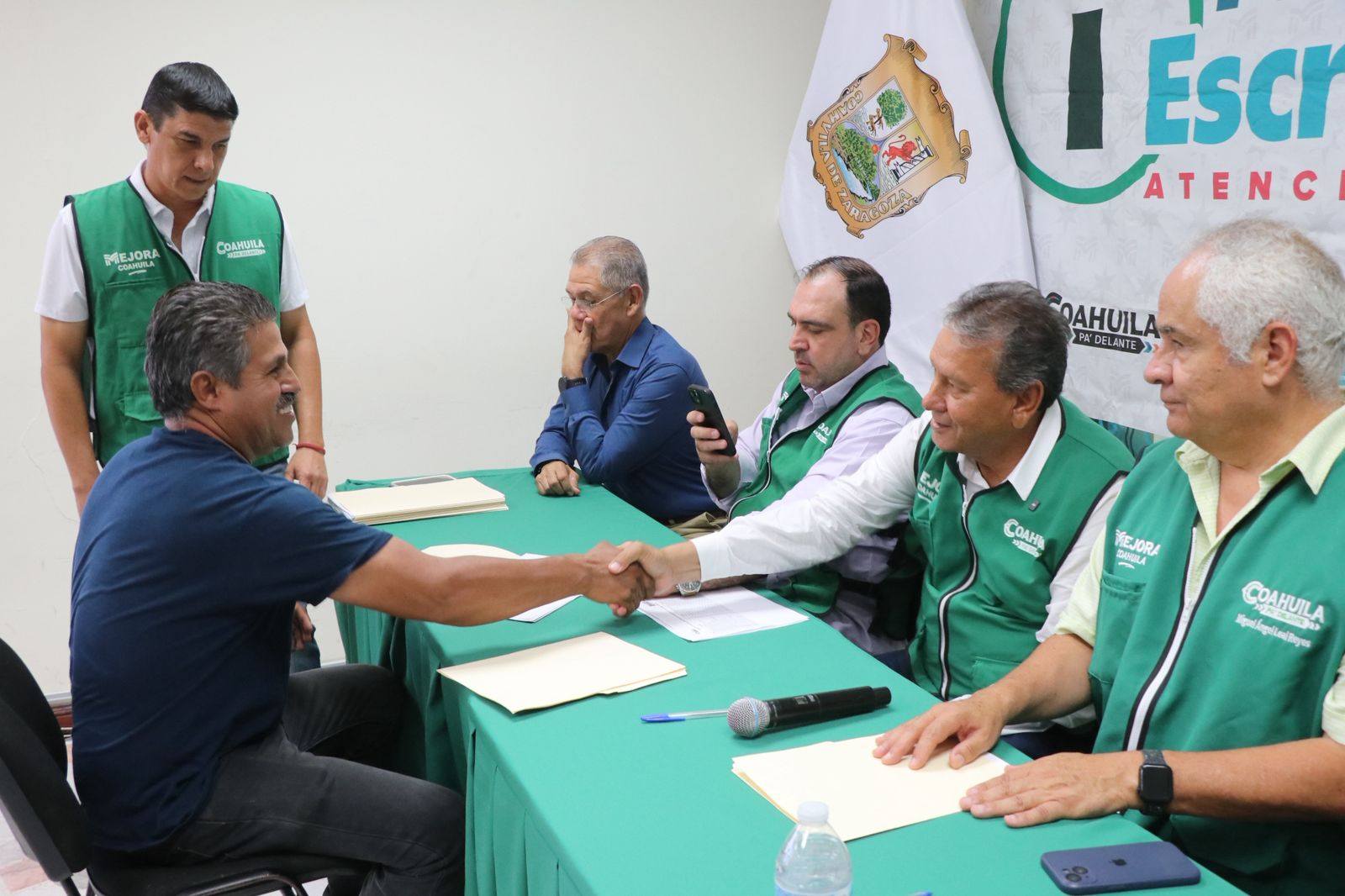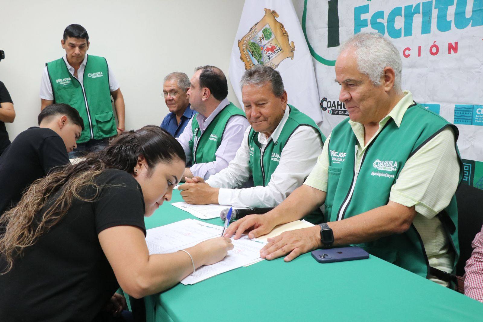 El evento, realizado en la Sala de Juntas de la Presidencia Municipal de Nueva Rosita, contó con la presencia de Miguel Ángel Leal Reyes, director de la CERTTURC; el subsecretario de Gobierno en la Región Carbonífera, Francisco Tobías Hernández; el alcalde Óscar Ríos Ramírez; Elier Sandoval Fernández, coordinador de la CERTTURC en Nueva Rosita; Eduardo Reséndiz Carrales, titular del Registro Público de la Propiedad; y Federico Quintanilla Riojas, coordinador regional del programa “Mejora”.